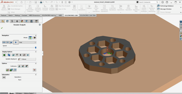 I individually designed and generated the CNC tool paths for a fidget spinner toy. I then assembled a physical prototype.