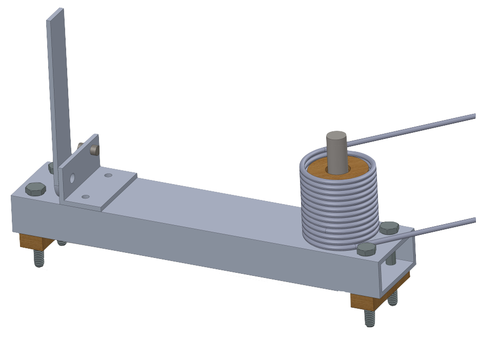 Isolated view of the bearing block subassembly containing the trigger mechanism and the torsional spring for powering the arm.