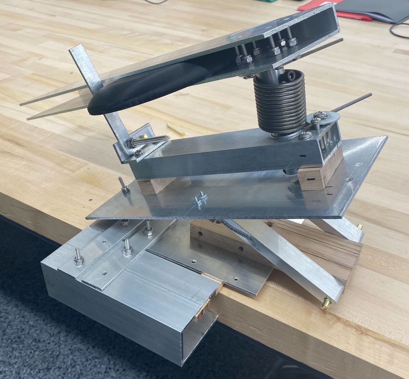 The final prototype matched our original design spec incredibly well. The only major change we made during construction was to the length of the launch arm, which was gradually shortened through empirical trials to optimize for launch distance and release position. Our prototype was able to consistently launch the frisbee ~20 feet, and the disc was one of only two aircraft in the class to achieve sustained flight.