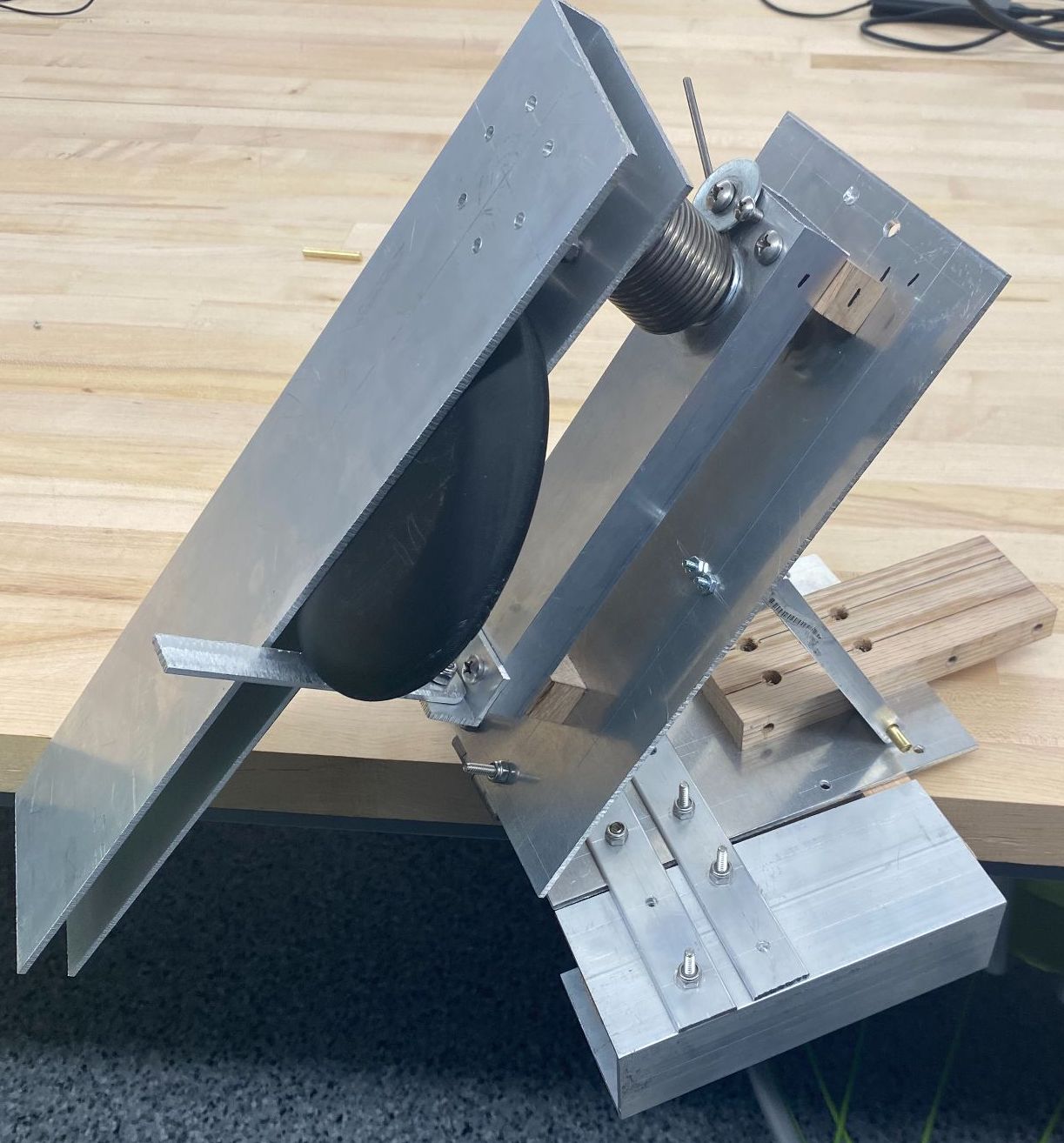 As part of a small team, I designed and built a table-mounted rotating arm frisbee launcher.